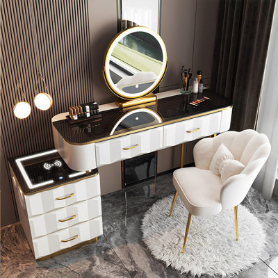 ชุดโต๊ะเครื่องแป้งกระจกสีขาวที่ทันสมัยสำหรับห้องนอนโต๊ะเครื่องแป้งแต่งหน้าลิ้นชักโต๊ะเครื่องแป้งมีไฟ